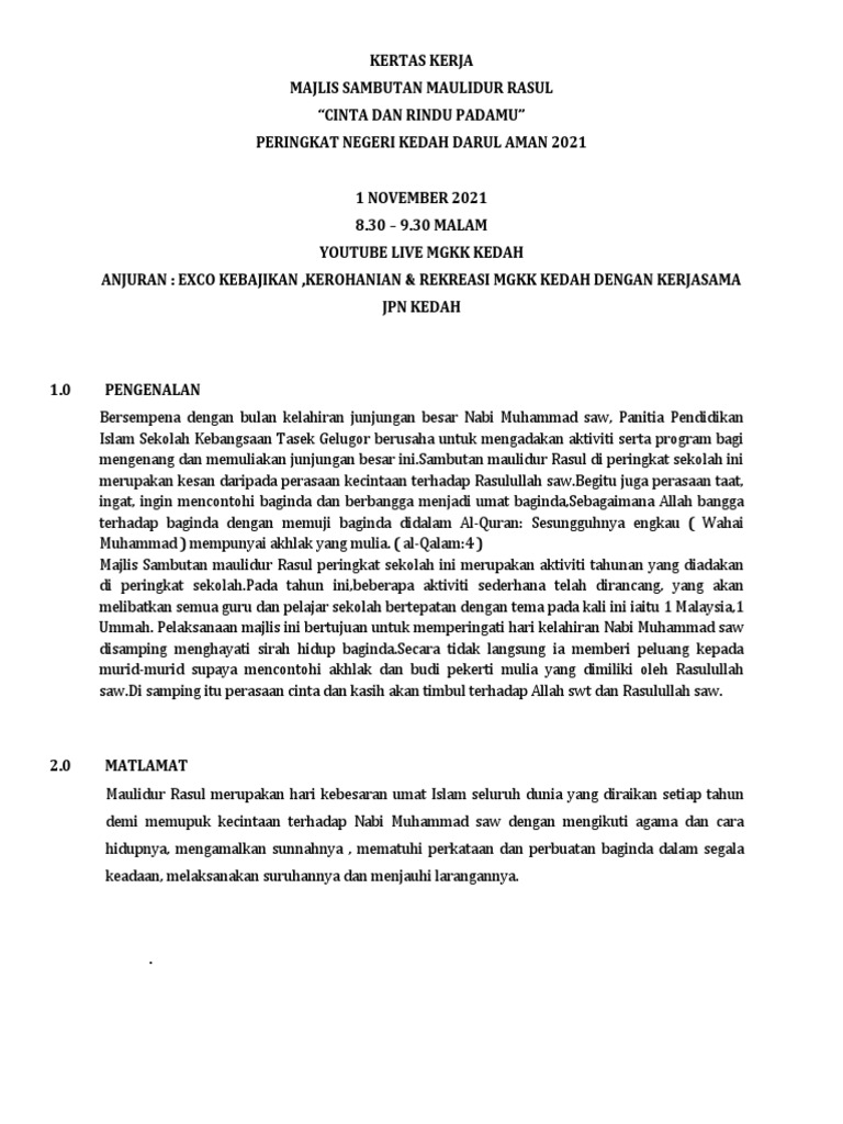 Kertas Kerja Maulidur Rasul 2021 Pdf